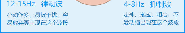 大脑是人的能力中枢,不同的脑区分管不同功能。当人思考的时候大脑会产生脑电波,不同的大脑活动,脑电波的频率也是不同的,诸如走神、多动、拖拉、冲动等问题,我们都可以通过脑电波的波形,清晰地判断出来。(如上图所示)